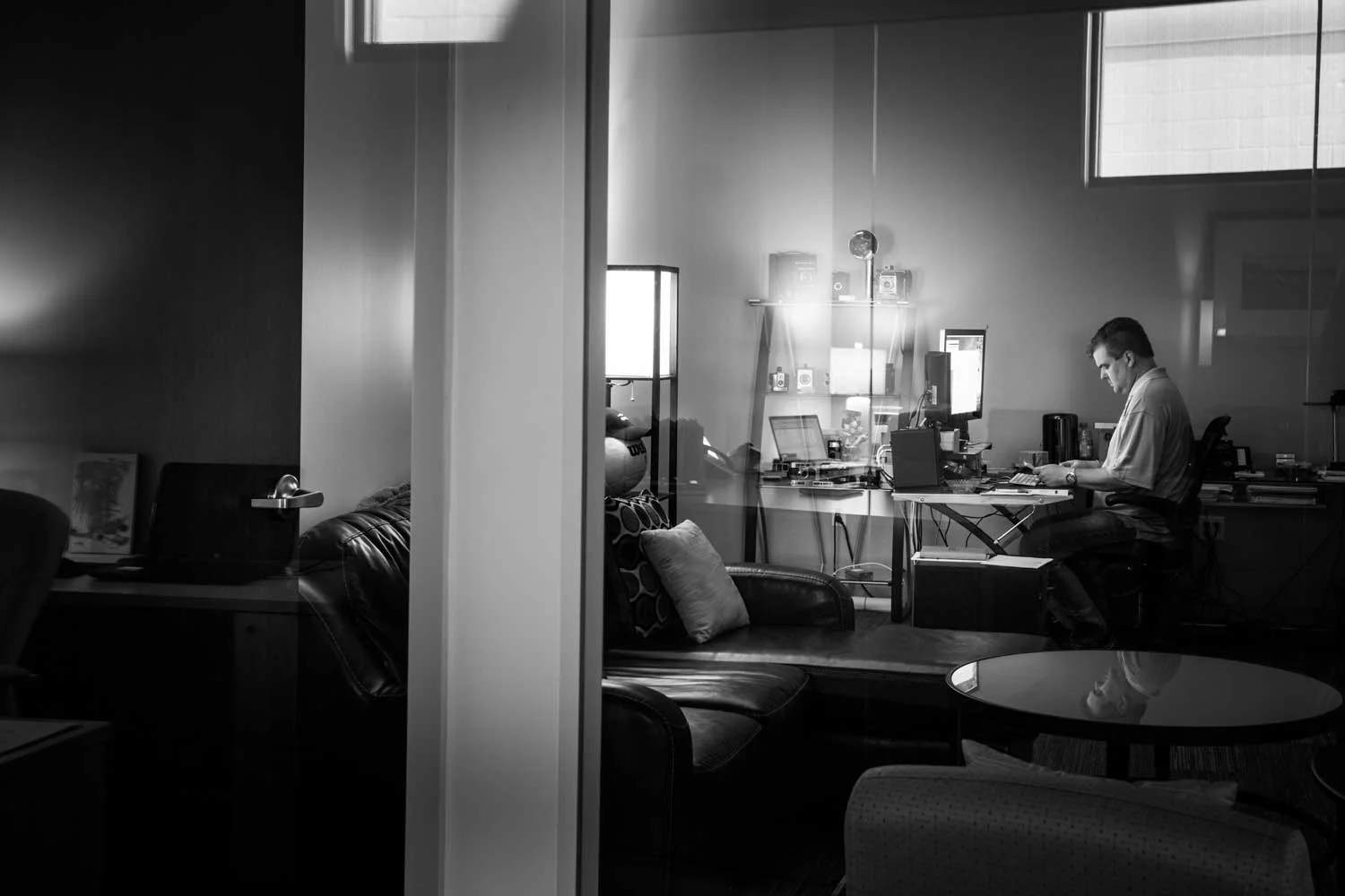 - Not to mention the fact that each bay has a 60" TV sitting across from a big comfy couch for our clients to work alongside us.